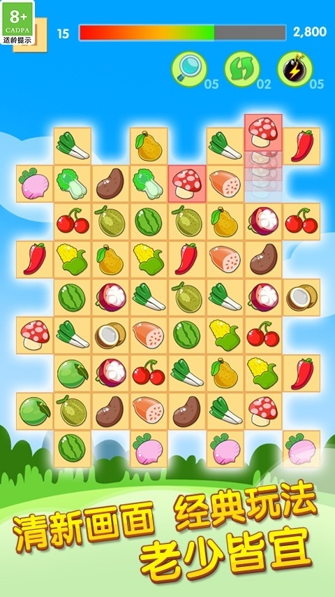 1、缤纷水果等你消除,趣味闯关挑战不同关卡,动脑思考活跃思维。