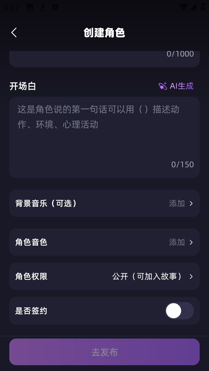 3、还可以添加开场白和背景音乐以及角色音色等。