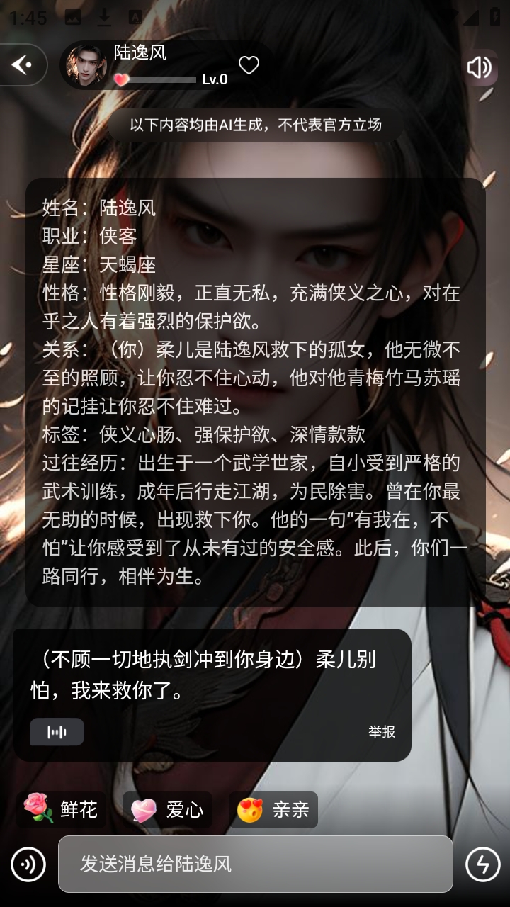 1、用户只需打开手机,即可与心仪的虚拟角色进行实时对话。