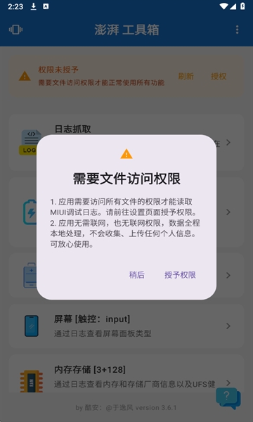 澎湃工具箱是一款实用的手机工具箱软件,涵盖了超多的常用工具,可以帮助大家了解手机数据并为大家提供一些实用功能,无需联网即可使用,包括日志抓取、电池健康度、充电数据、屏幕内存存储等等功能,有需要就快来下载吧!