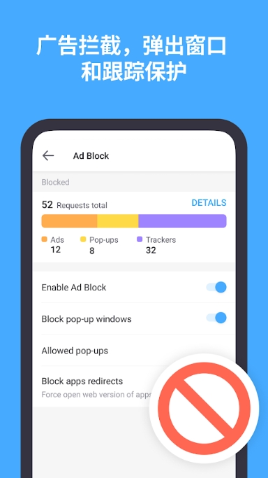 1、广告拦截:该浏览器集成了强大的广告拦截功能,可以屏蔽各种广告、弹窗以及恶意网站。