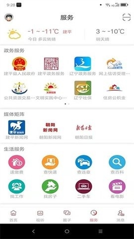 4、贴心的天气信息,服务页面还设置了天气展示栏并展示今日和明日天气数据