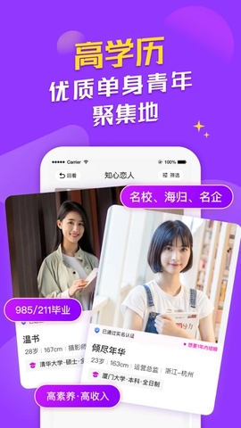 知心恋人是一款婚恋社交应用,专为20-35岁优质单身青年打造的高学历实名制婚恋交友平台,,采用的是严格实名认证,每天为你显示附近可以约的人,每天为你智能推荐超多心动的异性,都是基于大数据的匹配,这里的聊天模式丰富,发的消息都是秒回的,感兴趣的可以来奥兔兔下载吧。