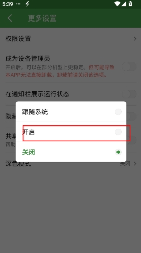 4、我们点击窗口中的“开启”即可看到应用主题变为了深色效果