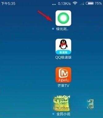 1、打开手机,找到并点击“绿光浏览器”应用。