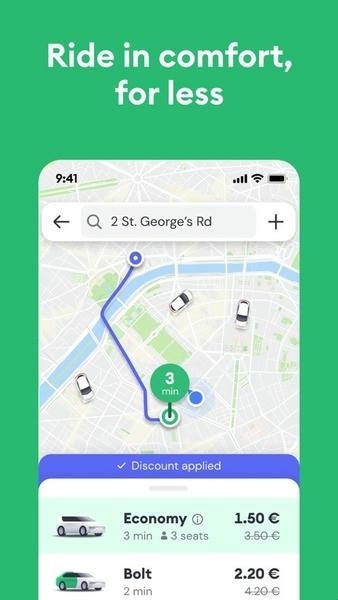 Bolt是一款可以帮助大家在国外快速打车的手机软件,用户只需要在线输入需要去的目的地,拥有独家闪电接单系统,三分钟内进行接单,用户只需要输入自己所在的位置和需要去往的地址就可以进行下单了,一键搜索附近的车辆,点击按钮就可以订购乘车。