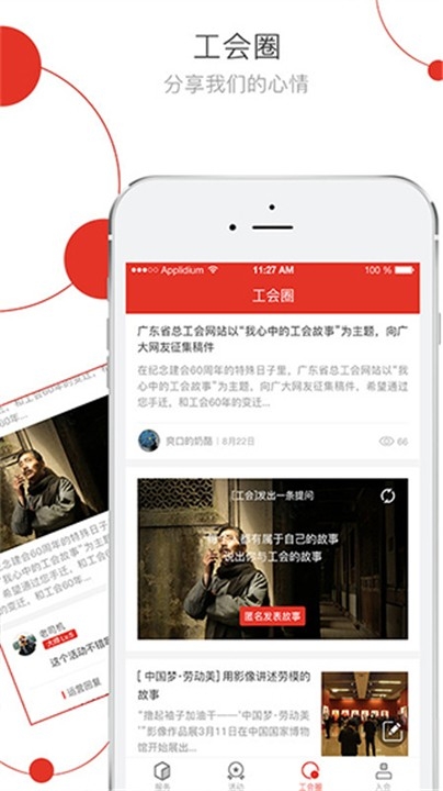 3、工会圈:找到自己的工会组织,领取专属电子工会会员卡。在工会圈发帖、留言、转发,说出你的心声。