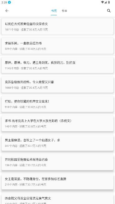 1、拥有多种不同题材的小说,有校园类,游戏类,言情类,奇幻类等等。