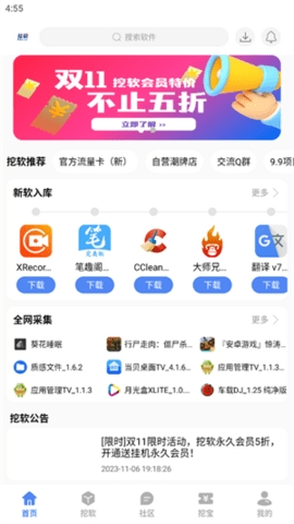 1.请在本网站本页面下载安装最新版本的挖软app,打开软件进入首页,点击右下角我的。
