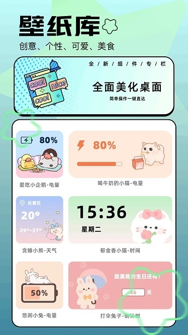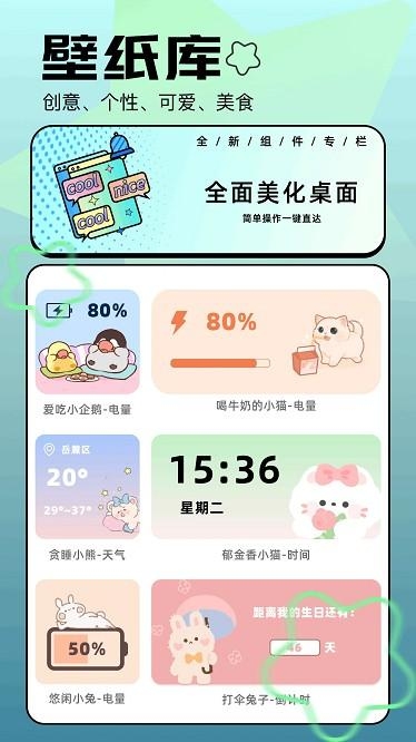 3、提供多种风格的小组件供用户选择,包括简约风、可爱风、炫酷风等,根据个人喜好自由搭配。