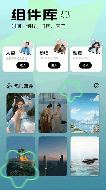 4、自定义组件:提供多风格桌面插件,包含清新系、卡通系、未来系等主题,支持自由混搭组合。