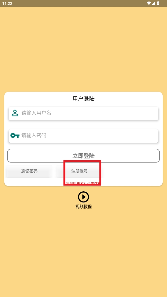 3、重新返回软件,进入登录界面,没有账号的点击注册