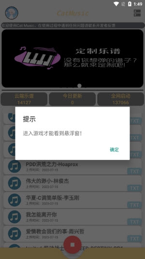 4.根据提示进入游戏后,就能看到悬浮窗就,开启自动弹琴了。
