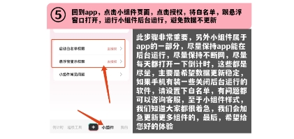 5、回到app,点击小组件页面,点击授权,将白名单,跟悬浮窗口打开,运行小组件后台运行,避免数据不更新