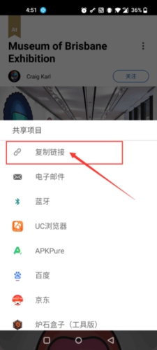 4、然后再点击下拉项目中的“复制链接”,把复制的链接粘贴到浏览器上,就可以点击保存啦。