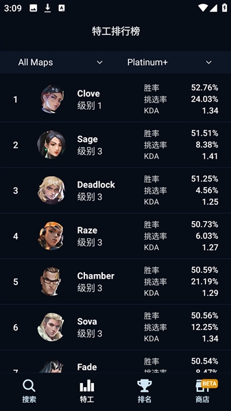 2、用户可以查看特工的各项数据。