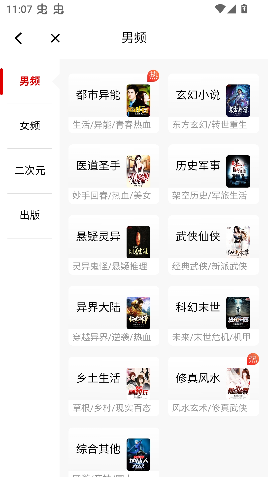 2、接下来我们可以在都市异能、历史军事、武侠仙侠、科幻末世等多种类型的小说里进行选择。