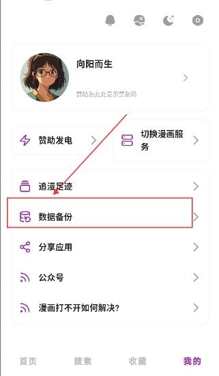 1、在我的页面里点击数据备份进入