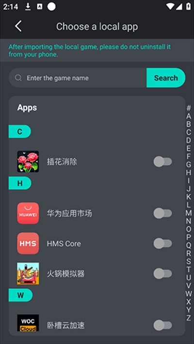 2、选择手机里的游戏进行数据修改