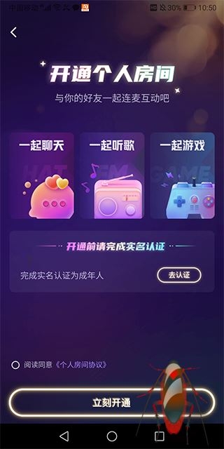 在打开的新页面中先完成实名认证,然后再按流程开通房间即可