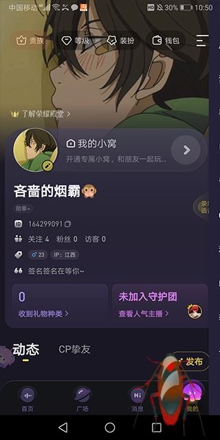 进入鱼耳app后点击底部【我的】进入个人中心界面中点击【我的小窝】