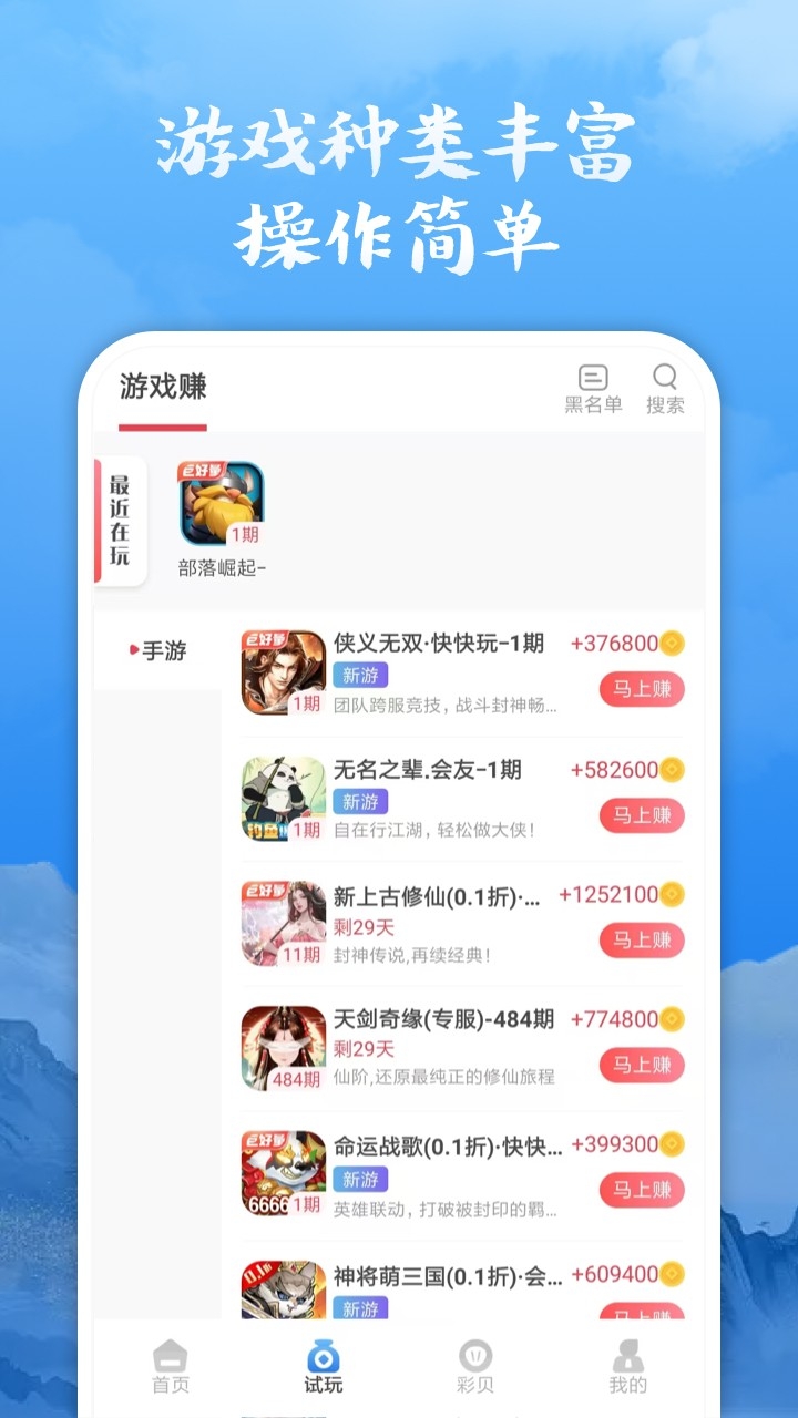 所有最近在玩的游戏都能记录保存,在应用中可清算组找到并畅玩体验;