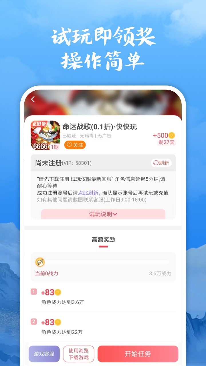 详细的游戏任务信息,知道游戏说明和奖励,方便用户选择性畅玩游戏;