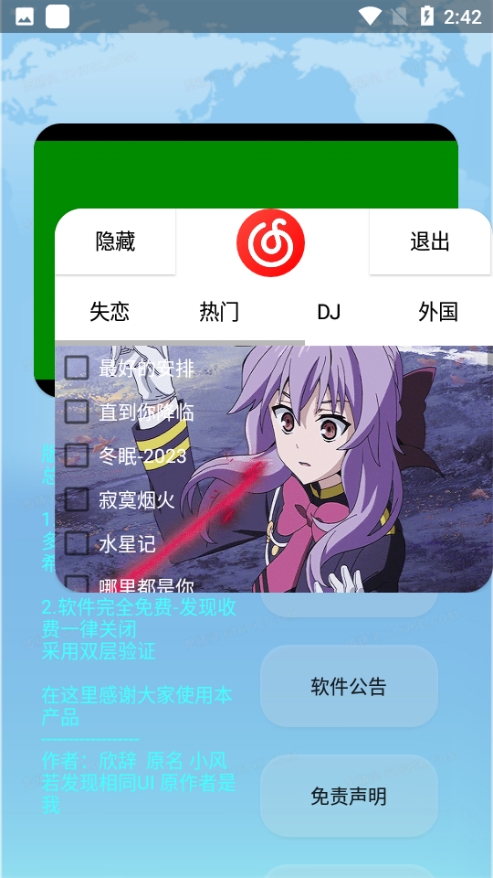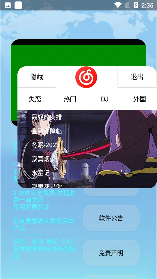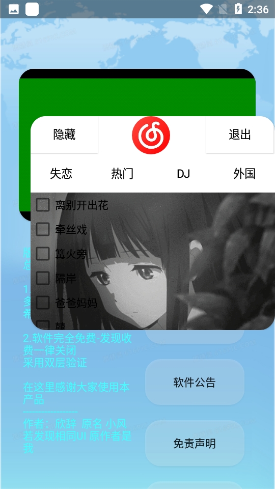 1、应用完全免费并且没有植入任何广告收听音乐起来还是很不错的。
