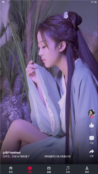 2、切换到视频页面,软件就能像抖音一样上下滑动观看短视频了;
