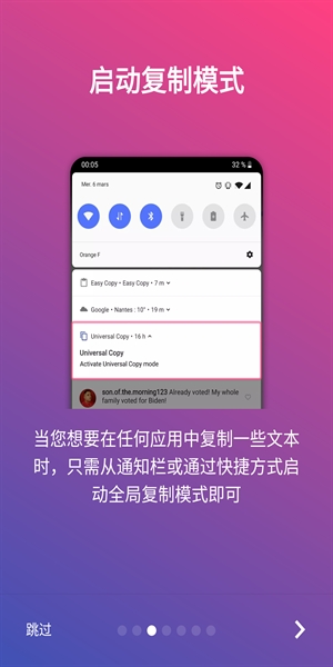 全局复制Universal Copy是一款复制手机中文字的工具,可以让你快速复制文字,让你效率大大增强。能够给用户提供便捷的服务,任意复制网页中的文字就能粘贴到其他地方,让文本信息提取更方便,操作简单易上手,适用场景也很丰富,欢迎需要的朋友下载!