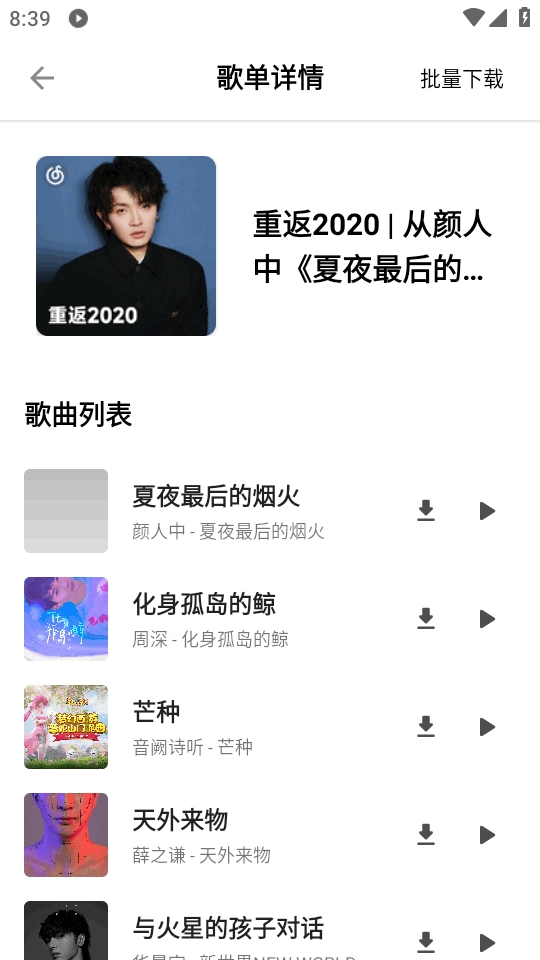 2、支持歌曲下载,用户可以将喜欢的歌曲下载到本地,无需网络也能畅享音乐。