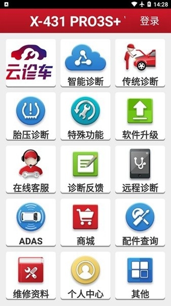 1、提供全面的诊断功能,包括云诊车、智能诊断、传统诊断、胎压诊断等核心服务。