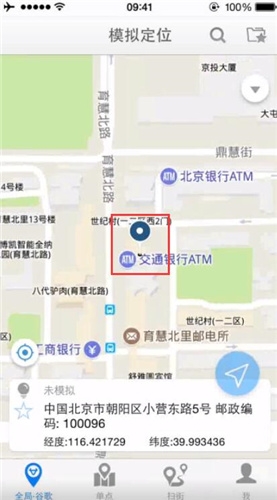 3、拖动在当前定位或某个区域内寻找某个地点进行模拟定位;