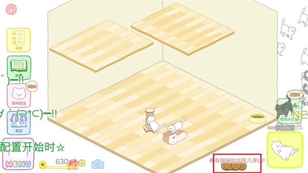 3、收集稀有猫,出现的猫咪品种会受到道具的影响哦;