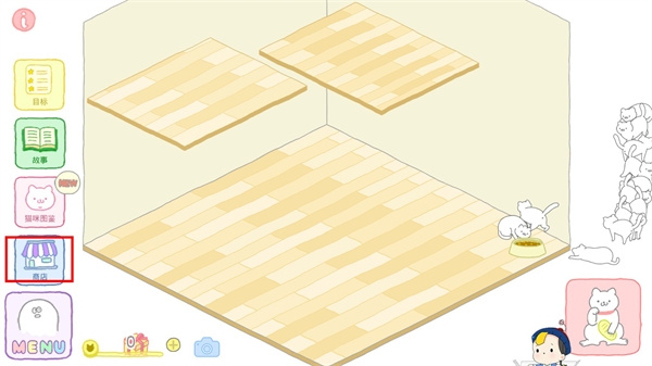 2、可以购买猫抓板,猫塔等等,也可以买新的房间哦;