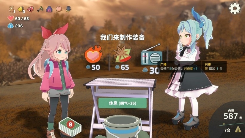 1、在游戏中玩家则需要通过卡牌和道具(游戏中叫齿轮)的组合帮助两位可爱的少女爬上日本各种名山的山顶。