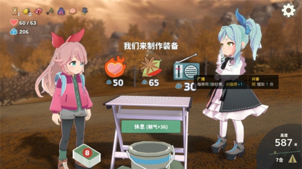 2、装备打造与山势应对。玩家可利用沿途获取的资源制作50余种装备。