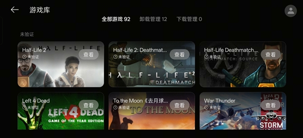 3、登录后进入游戏库,查看已按运行效果分类的游戏列表。