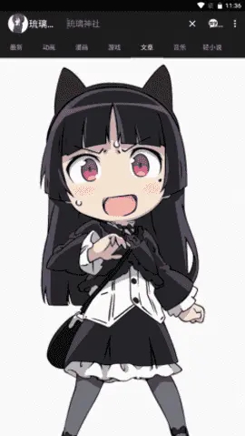 1、打开琉璃神社APP,在首页中即为大家带来最新投稿、动画、漫画、游戏、文章、音乐和番剧等分类;