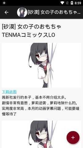 2、在动漫的详情页面中可以阅读、分享,对于动漫还可以进行磁力链接下载哟。