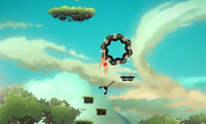 2.利用摆动的设计让自己能飞跃到平台的另一面
