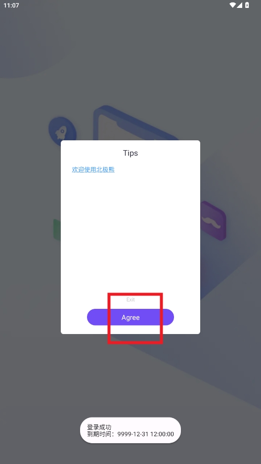 2、开启后,返回应用,进入登录界面,不需要输入卡密,直接点击登录就可以