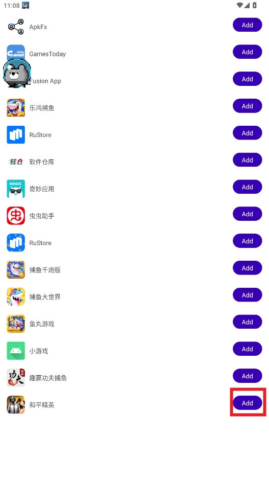 6、找到和平精英游戏,点击添加