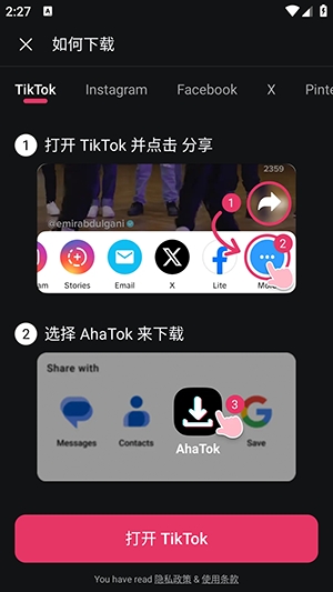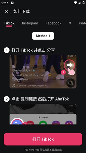 AhaTik Downloader是一款支持无水印视频下载工具,用户可免费使用该工具,轻松下载高清无水印视频。所有下载的视频均为最高清或原画系列,并且也无任何水印!并提供下载内容管理功能,方便用户高效保存和整理喜爱的视频。