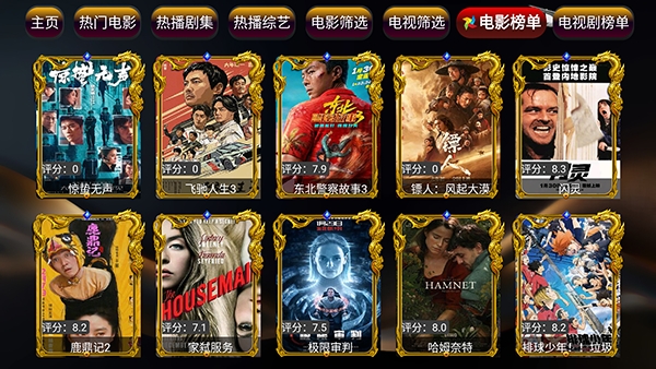 3、主界面无冗余信息干扰,所有功能模块清晰分层,配合遥控器方向键即可高效完成浏览、搜索与播放等核心操作。