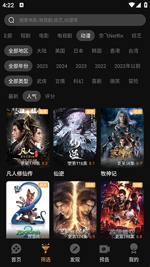 2、点击筛选板块可以筛选感兴趣的影片。