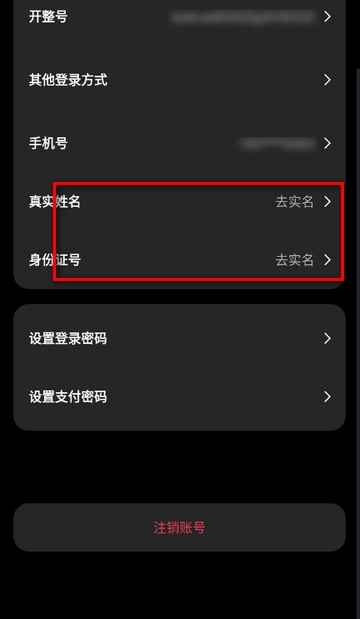 3、点击真实姓名即可去实名