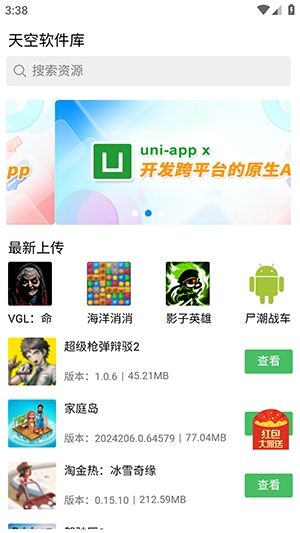 天空软件库是一款功能丰富、界面友好、更新及时的综合性软件,这里面包含的非常多的丰富的资源库,始终保持软件资源的实时更新,让用户每天都可以在平台中发现更多新的游戏与软件资源,能在这里找到满足自身需求的内容。