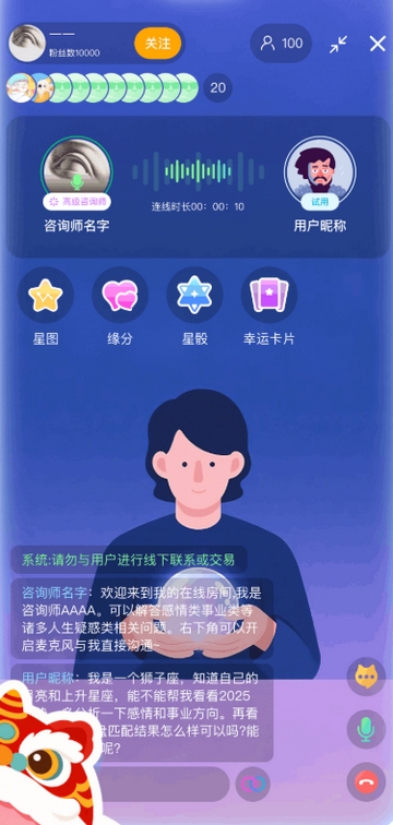 2、支持查看每日、每周和每月的星座运势分析,满足用户对星座命理的兴趣需求。