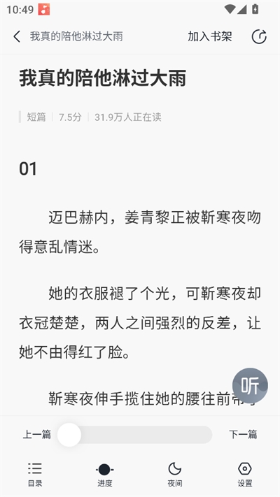 3、海量精选短篇小说,涵盖言情、悬疑、科幻、治愈等多种题材,满足你的不同阅读口味。
